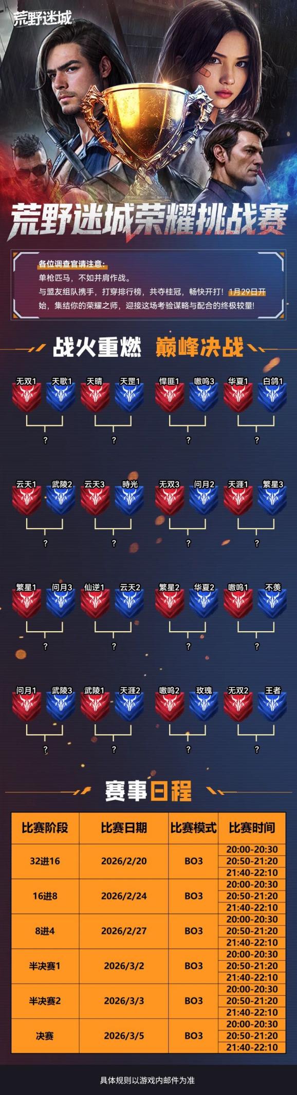 战火重燃,巅峰决战,32进16强对阵战队出炉,详情请见下图: