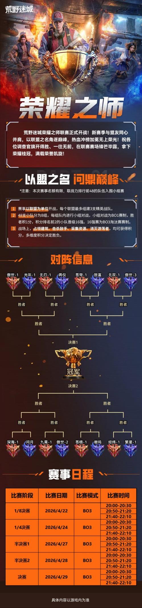 以盟之名,问鼎巅峰,16进8强对阵战队出炉,详情请见下图: