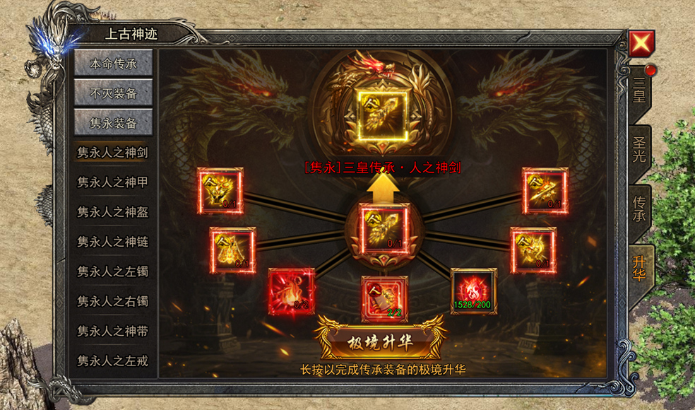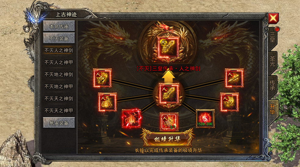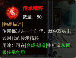 通过消耗对应的永恒级装备、剑甲图纸与传承精粹,即可合成更高阶的【不灭】级装备。