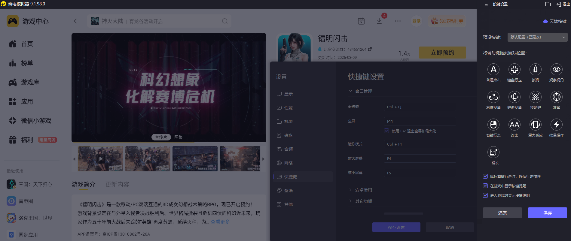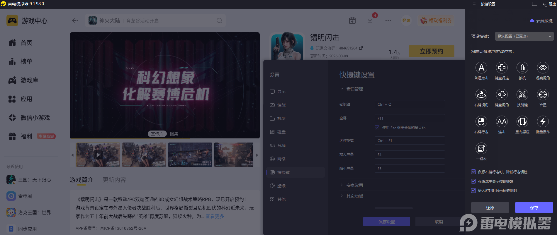 镭明闪击实战对局中,需要频繁调整角色部署位置、切换技能释放时机和调配作战阵容,雷电模拟器支持自定义键盘按键适配操作模式,适配游戏部署、移动、技能释放等所有核心操作指令,按键操控响应贴合游玩节奏,精准完成各类战术操作,轻松实现流畅布阵和灵活对战。