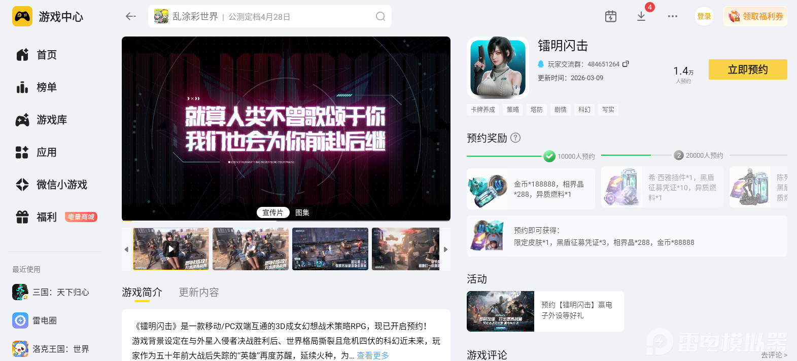 喜欢科幻策略对战题材的朋友,都格外关注镭明闪击这个新游。镭明闪击免费下载安装不用找杂乱小众平台,正规专属渠道能保障安装包纯净无多余捆绑,安心开启游戏冒险。这款主打原创塔攻玩法的手游热度持续走高,本期小编就给大家推荐一个镭明闪击免费下载安装渠道,让大家顺利进入科幻战场开启对战征程。