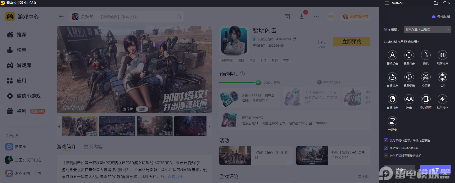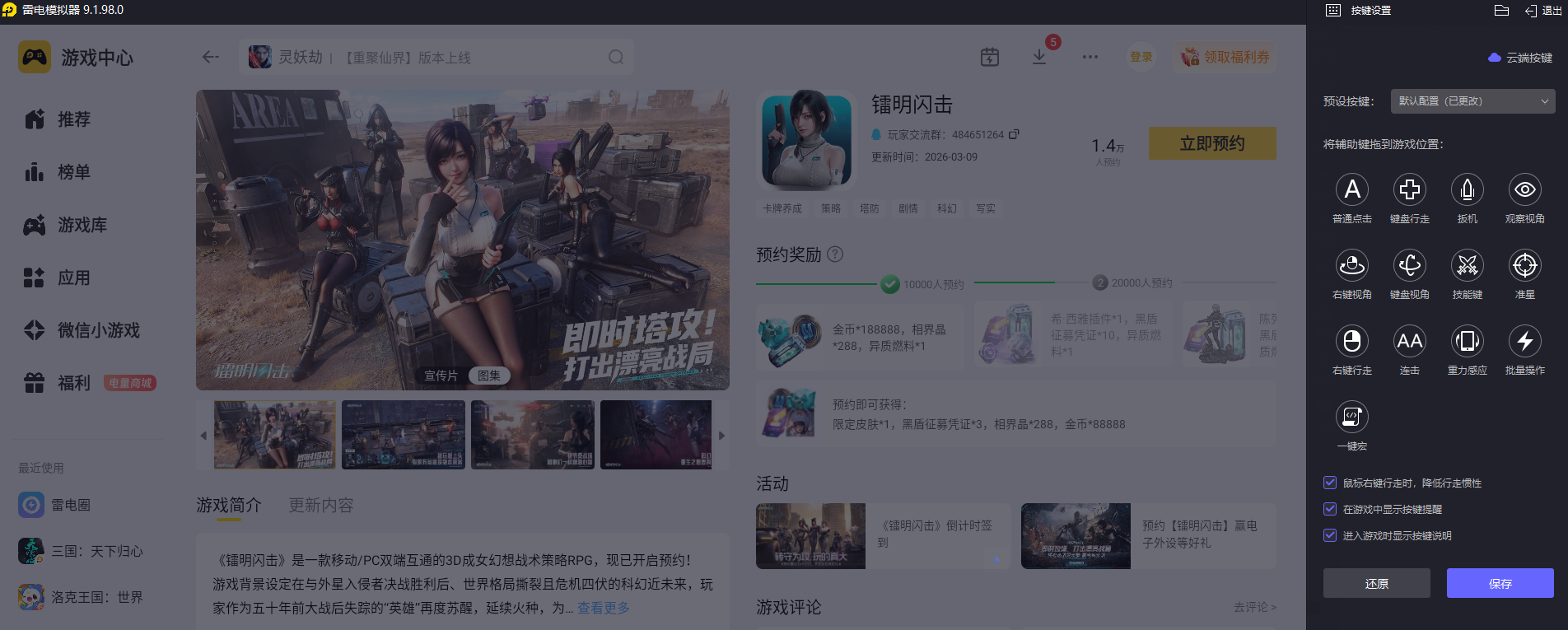 镭明闪击的战斗玩法需要精准释放技能、快速完成战术操作,手机触屏操作容易出现触控偏差,影响操作的连贯性与精准度。雷电模拟器适配专属键鼠操控功能,按键响应速度更快,还能自定义设置按键布局,让每一步操作都精准到位,轻松完成各类战斗操作,提升整体玩法体验。