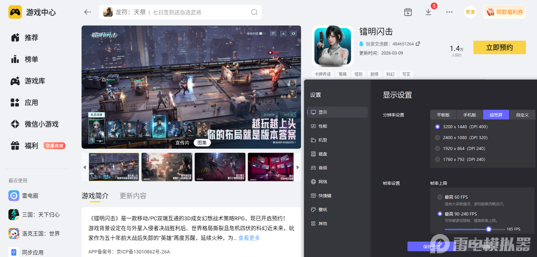 镭明闪击有着精致的场景建模与细腻的角色立绘,各类战斗特效也设计得十分精美,手机端小屏幕无法完整展现这些画面细节,视觉体验会大打折扣。雷电模拟器支持4K分辨率显示,能完整还原游戏每一处画面细节,色彩呈现更饱满精准,让游戏场景与技能特效都能清晰展现,带来绝佳视觉体验。