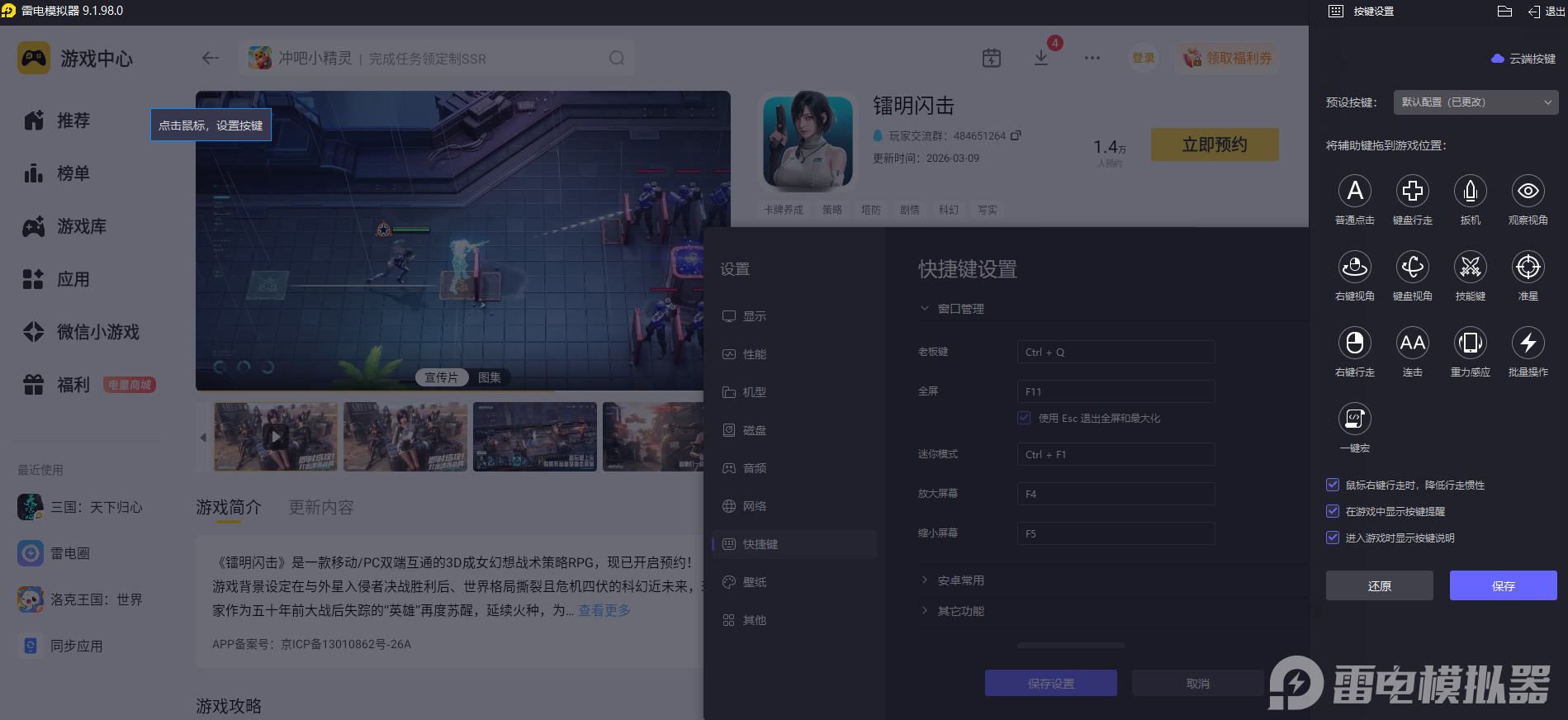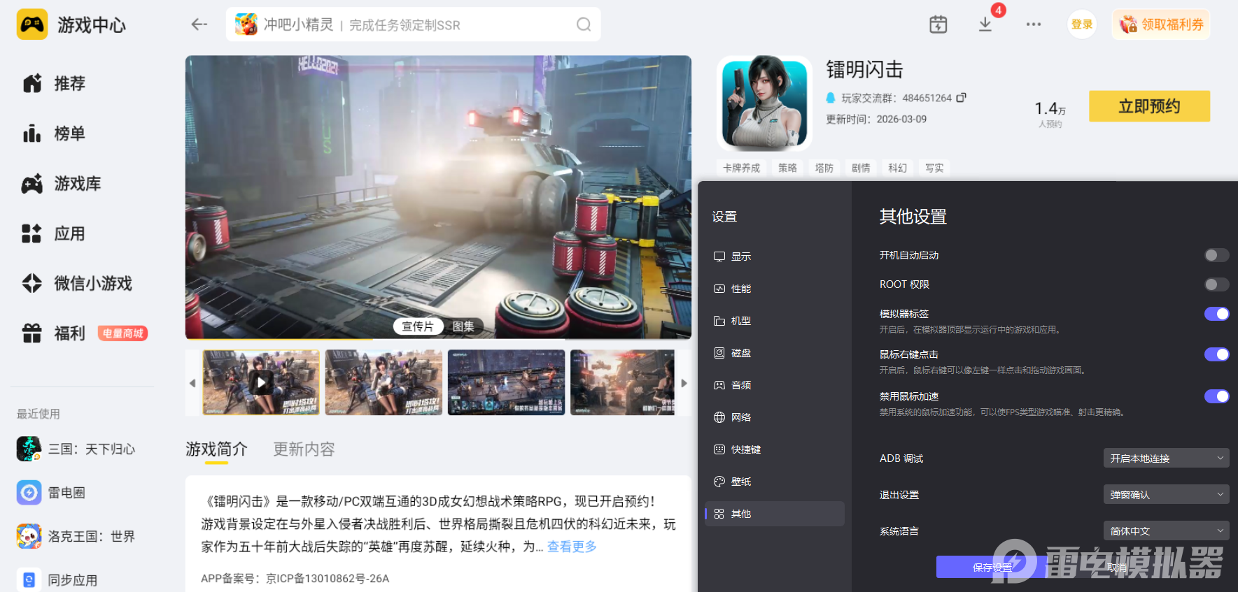 在这里,小编建议大家在电脑上使用雷电模拟器游玩镭明闪击,能获得更优质的游戏体验,整体的视觉感受与操作手感都会大幅提升,长时间进行BOSS战也能保持舒适的游玩状态,更专注地完成每一步作战操作。