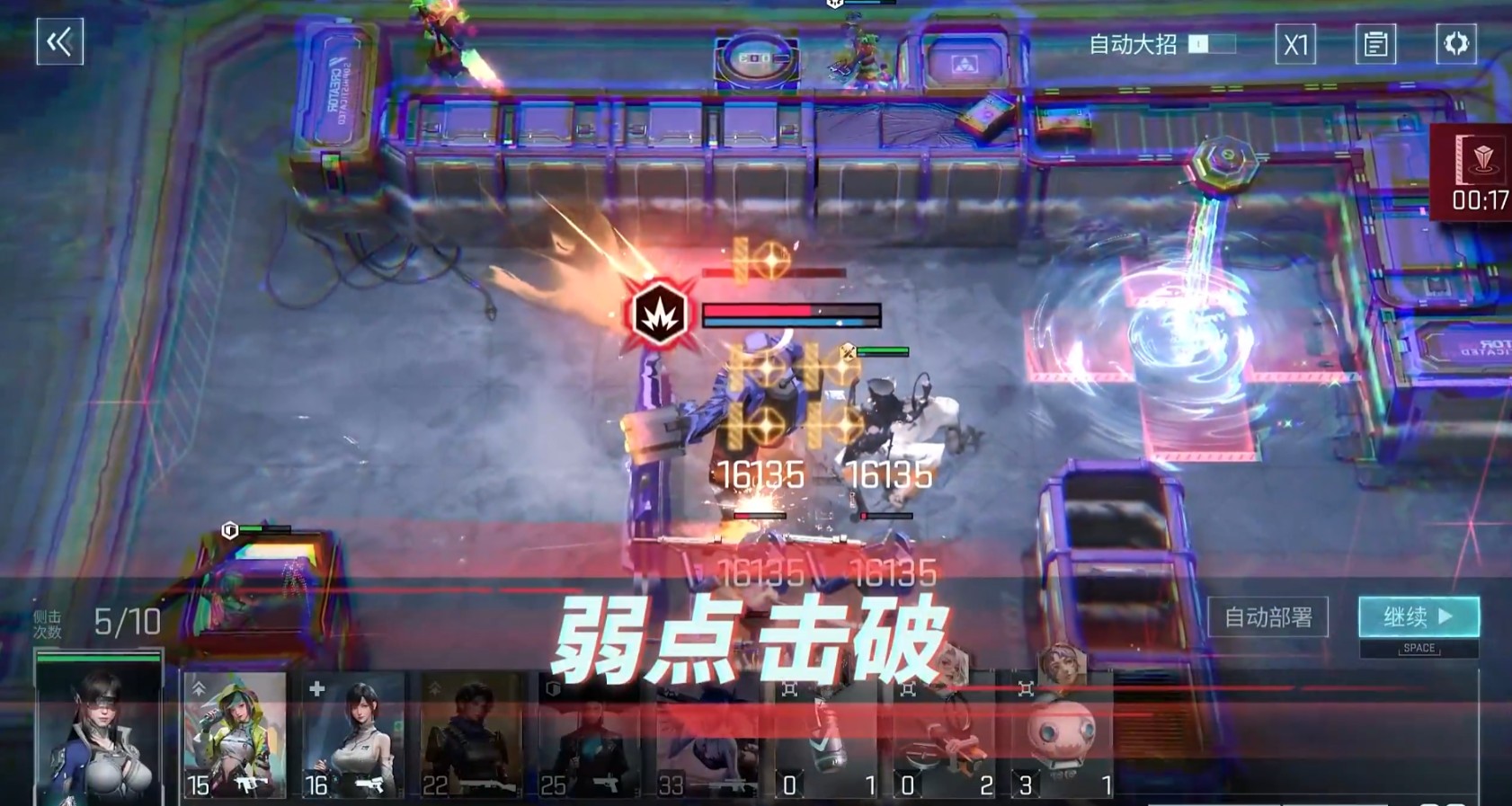 BOSS战分为三个核心阶段,初始部署阶段要快速排布角色,让重盾角色靠前嘲讽BOSS,借助掩体挡住正面范围伤害,其余角色在侧后方就位。侧击累积阶段稳步输出,持续完成侧击积攒破防进度,不贸然释放大招。弱点击破触发后,立刻集中所有角色火力,抓住BOSS眩晕窗口期打出爆发伤害,护盾重生后再循环操作。
