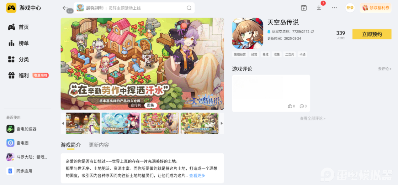 想要顺畅体验天空岛传说电脑版,选择雷电模拟器搭配靠谱下载渠道是绝佳组合。相信大屏高清的体验,会让你在这款治愈系手游中收获更多快乐,尽情探索天空岛的每一处惊喜。