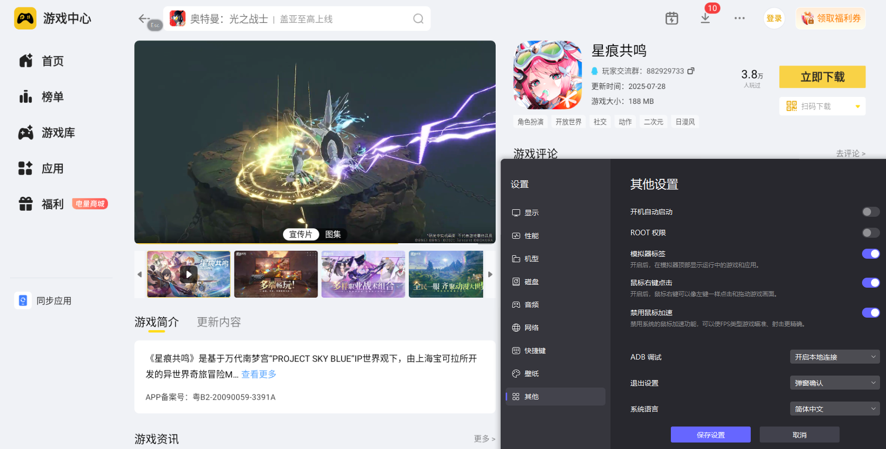 用雷电模拟器的云游戏玩《星痕共鸣》,优势和游戏玩法的贴合度十分突出。平台每日每款游戏可以免费游玩三小时,这个时长足够完成日常委托、副本挑战与角色养成。平台自带安卓和iOS双端登录,不同系统的账号都能无缝切换登录。同时云游戏可以配合模拟器的自定义按键、操作录制、多开同步等工具,让战斗操作更精准,日常任务可自动录制执行,多账号同步培养角色,让星界探索与养成更高效。