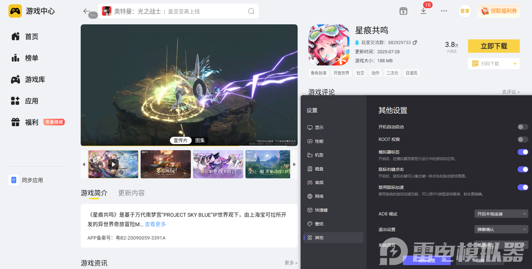 用雷电模拟器云游戏功能玩《星痕共鸣》更佳