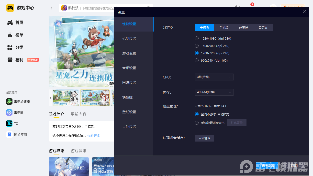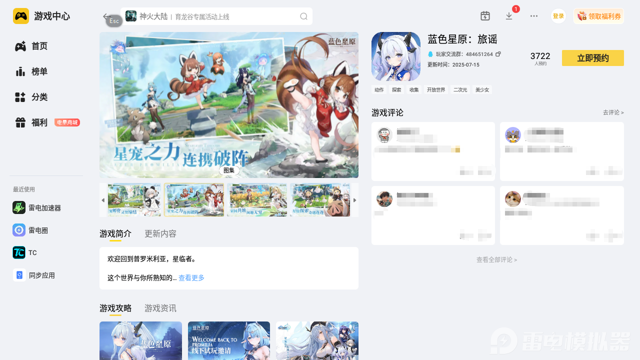 使用雷电模拟器运行【蓝色星原旅谣】优势: