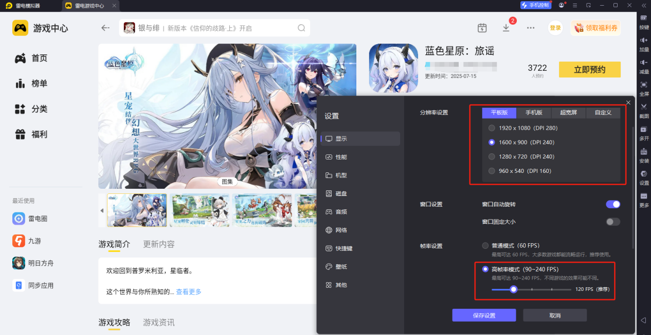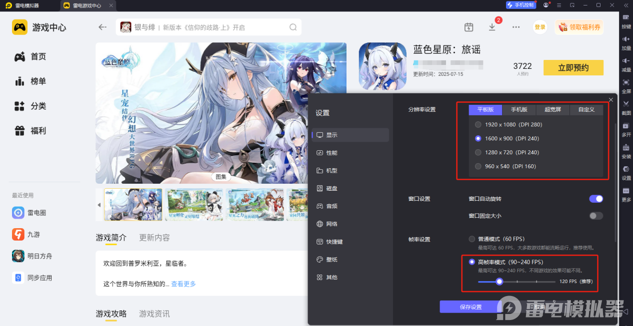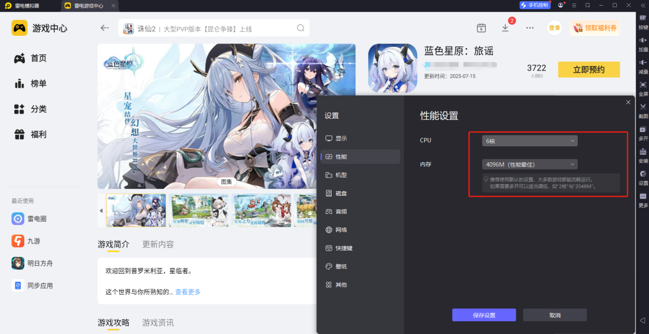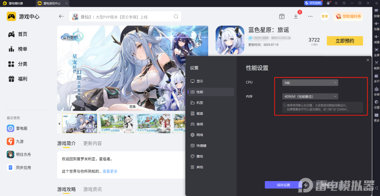 雷电模拟器——蓝色星原旅谣电脑版的好帮手