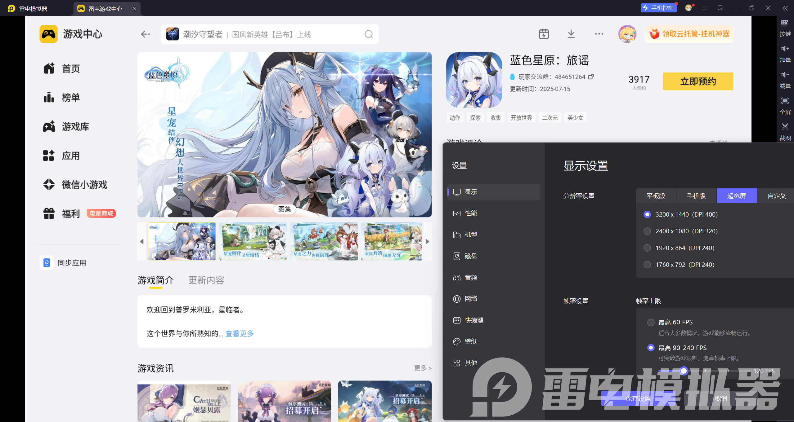 雷电模拟器——蓝色星原旅谣电脑版的好帮手