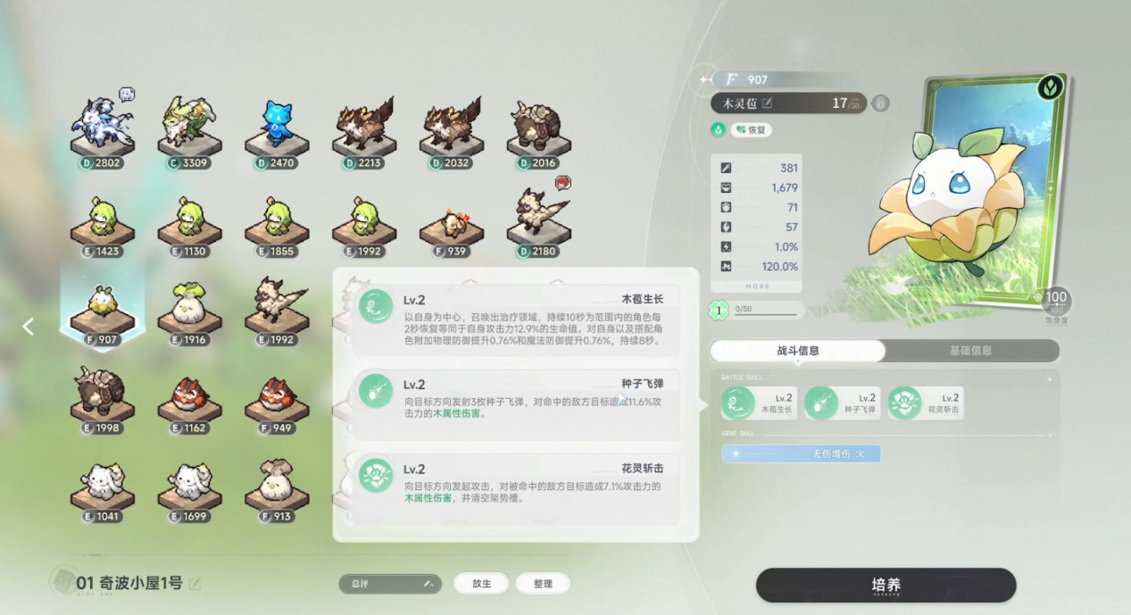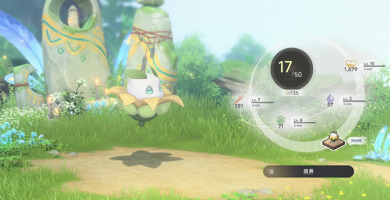 在游戏冒险过程中,木灵苞会全程跟随玩家穿梭在各个地图场景中,还能触发专属的互动剧情与隐藏彩蛋。它的能力标签为恢复,能在探索中为玩家提供温和的支援效果,同时也能参与家园系统的种植、采集环节,让资源获取的过程更有乐趣。玩家还能通过养成解锁木灵苞更多互动动作,让星球探索的旅程不再单调。