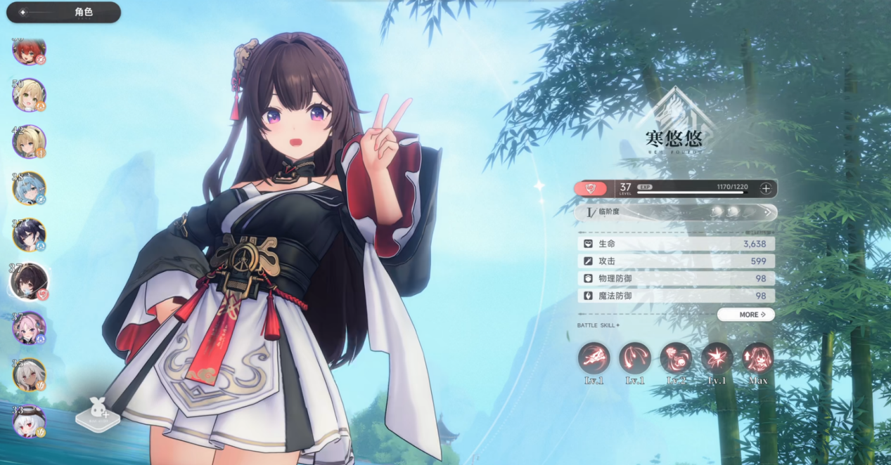 龙人族少女,一直隐居在云海遥,性格比较冷淡,很少过问外界的事情。她是水属性赋予型角色,拥有多样的辅助能力,能为队友提供各种增益效果,还能给敌人附加减益状态,在队伍里承担辅助与保护的职责。
