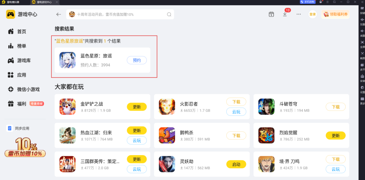 根据小编所了解到的信息,目前蓝色星原旅谣还没有公布正式的公测时间,但是依照测试时间来看,游戏大概率将在2026年开启公测,想要第一时间玩到公测版本,小编推荐大家使用雷电模拟器。大家可以在浏览器打开雷电模拟器官网,下载后在雷电游戏中心搜索“蓝色星原:旅谣”,然后点击预约即可。