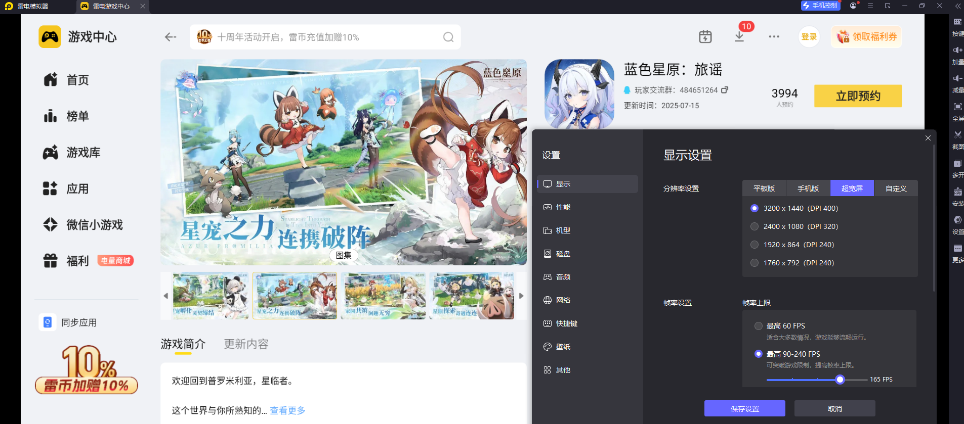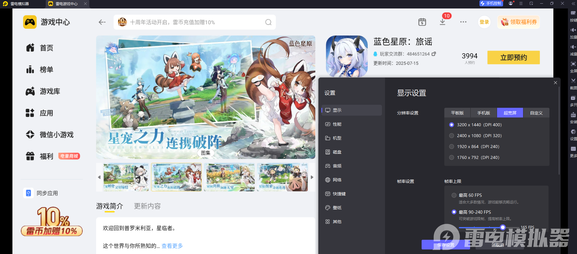 这款游戏的画面设计十分用心,有着细腻精致的角色建模、梦幻恢弘的星际场景,还有华丽不突兀的技能特效,开放世界里的地形纹理、光影变化、星宠细节都做得十分到位,雷电模拟器的4K分辨率+大屏高清显示模式,能将游戏的原生画质完整还原出来,星原里的星空、地貌、角色与星宠的每一处细节都清晰可见,让玩家更沉浸地感受星原世界的视觉魅力。