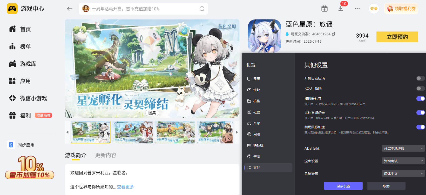 蓝色星原旅谣拥有超大的幻想开放世界,游戏里需要频繁进行角色移动、高空飞行探索、多角色切换战斗,还要精准释放技能连招、触发场景互动机关,雷电模拟器支持键鼠自定义按键映射,能把游戏里的各类操作对应到键盘和鼠标上,操控起来精准又顺手,不管是长途飞行探索还是快节奏战斗,都能轻松应对。