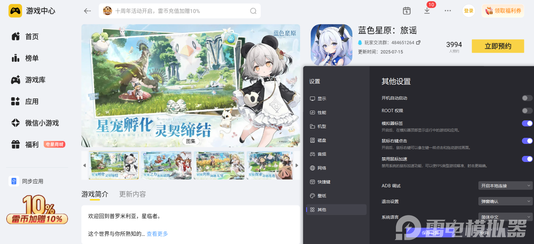 蓝色星原旅谣公测为玩家打造了一场温柔又有趣的星际冒险每一次星际穿梭、每一次场景互动,都能感受到游戏独有的治愈氛围。现在去雷电模拟器预约游戏,踏上这片蓝色星原,跟着旅谣的旋律,书写属于自己的冒险故事吧。