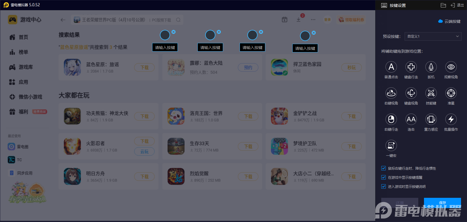 在通过雷电模拟器运行的时候,软件带来的键鼠自定义功能,可让玩家根据星鰩的技能特性,把核心操作绑定至便捷键位。如星鰩的飞行控制、毒素攻击、辅助增益等技能设为键盘快捷键,相比手机触屏操作而言,可以有效去避免滑动偏差与延迟,技能释放起来也会更精准。在战斗中,面对敌人突袭或是需要快速衔接连携技时,能实现快速的响应,确保星鳐的飞行闪避与毒素输出无缝衔接,大幅提升战斗容错率。