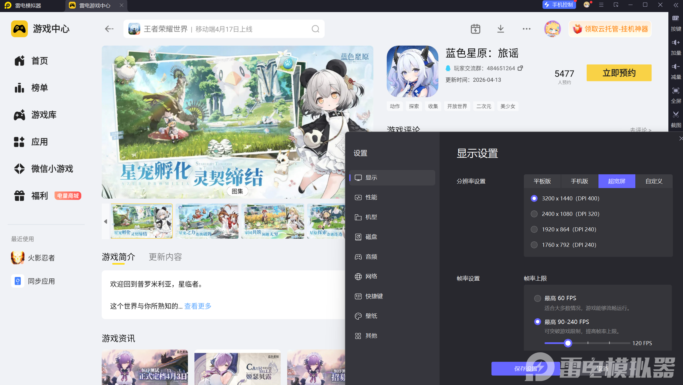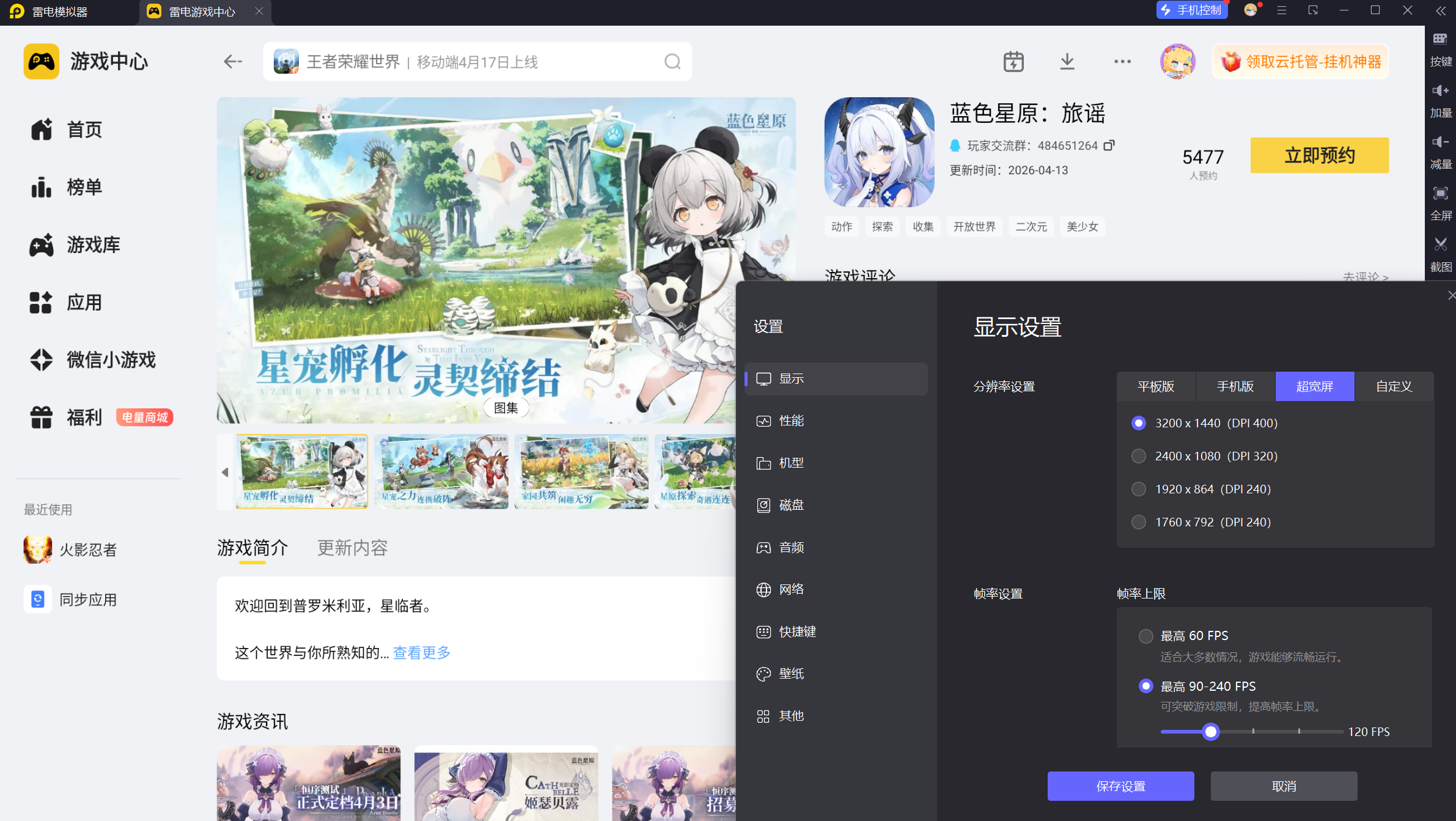 雷电模拟器——蓝色星原旅谣电脑版的好帮手