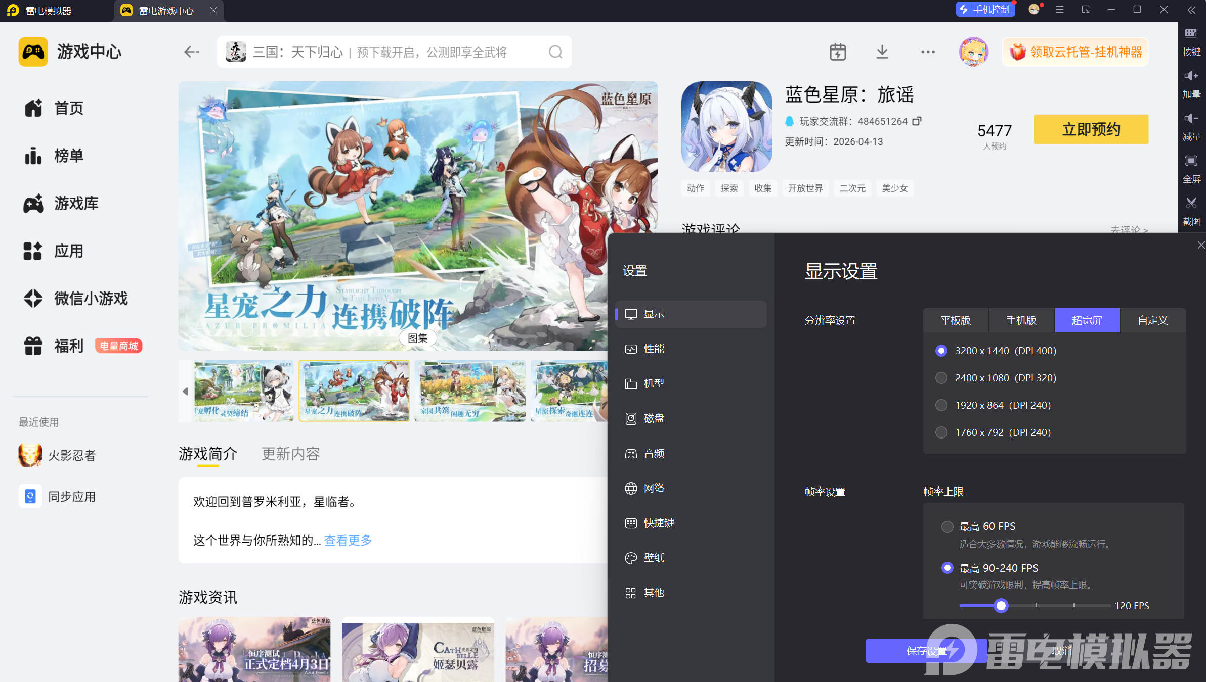 雷电模拟器——蓝色星原旅谣电脑版的好帮手