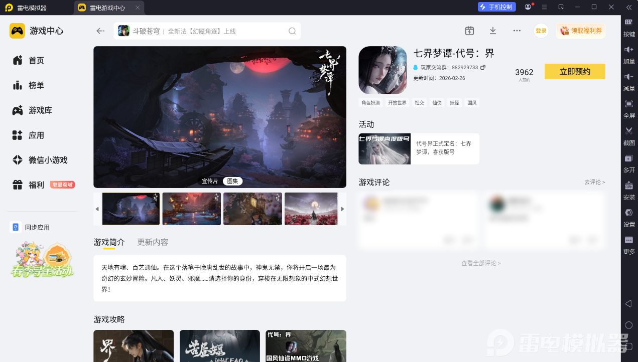 对于七界梦谭是手游还是端游这个问题,答案已经分享给大家,它是移动、PC多端游戏,这款仙诡MMO有着独特的玩法与世界观,玩家也可借助雷电模拟器优化操作与视觉体验,无论是参与限量测试还是后续正式游玩,都能平稳感受东方仙诡世界的独特乐趣。