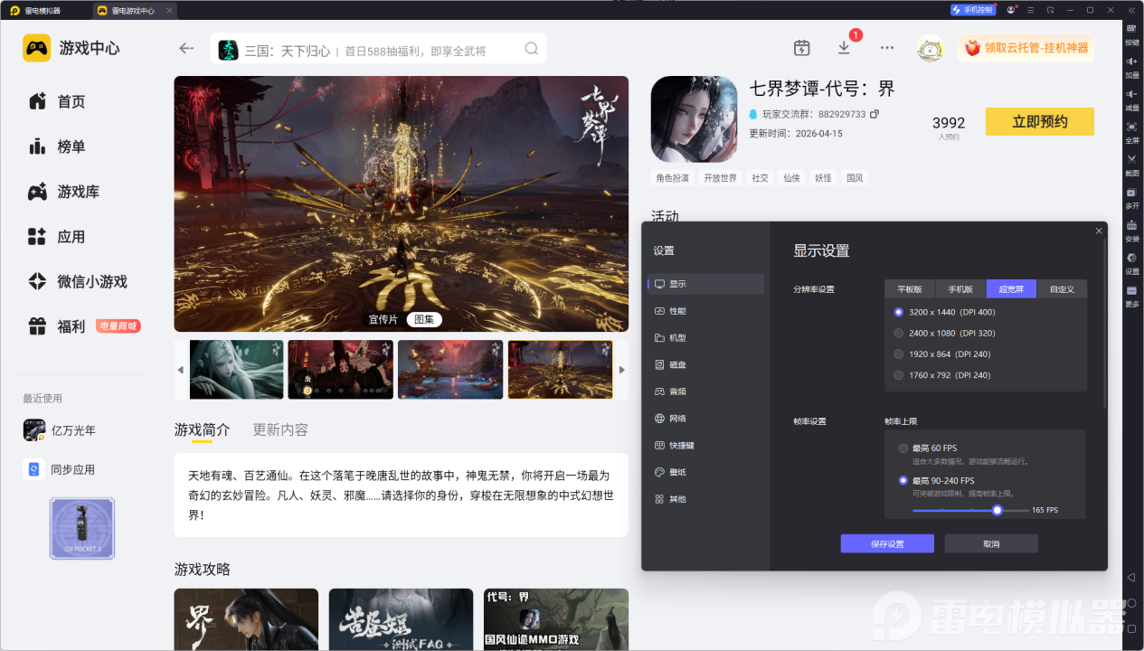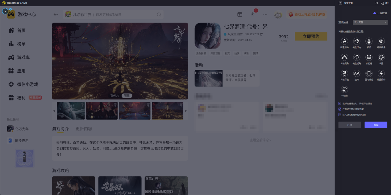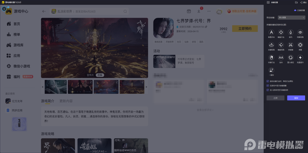 推荐用雷电模拟器玩七界梦谭,能大幅提升操作体验,优势十分明显。