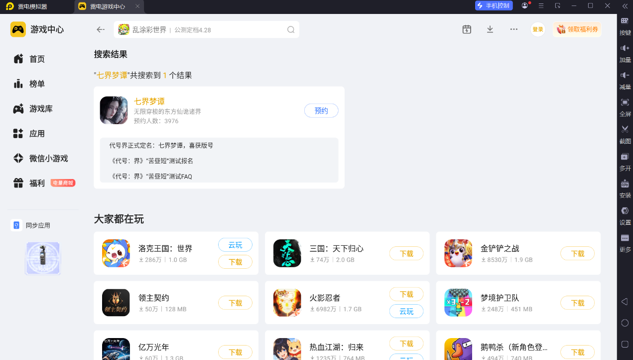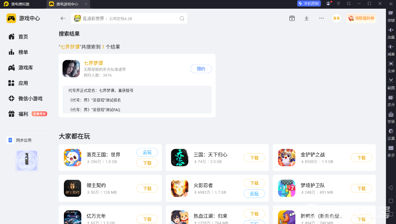 七界梦谭目前已开启二测招募,并计划于4月29日开启测试,玩家可通过浏览器搜索打开雷电模拟器官网下载安装最新版客户端,之后启动模拟器,直接在其内置的游戏中心搜索“七界梦谭”,即可完成该作的预约与下载操作。预约后会第一时间收到测试资格发放、开测时间等推送通知,还可参与平台对应的预约福利活动,为游戏体验做好准备。