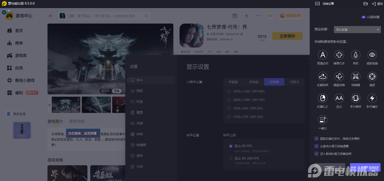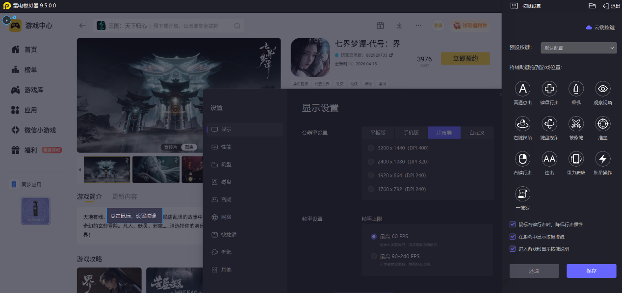 七界梦谭包含战斗施法、场景交互、夺舍切换等多种操作需求,雷电模拟器的键鼠配合模式,可从根源避免触屏按键带来的误触情况。使用键盘操控角色移动、切换技能,鼠标锁定目标或触发交互,指令响应更精准,应对复杂的浮空斗法与秘境解谜时,操作流畅度更高。长时间游玩也能保持稳定的操控状态,适配游戏长时间探索与养成的玩法需求。