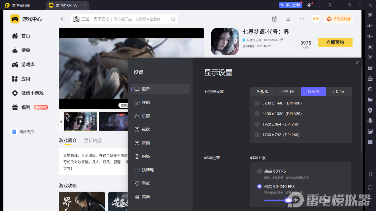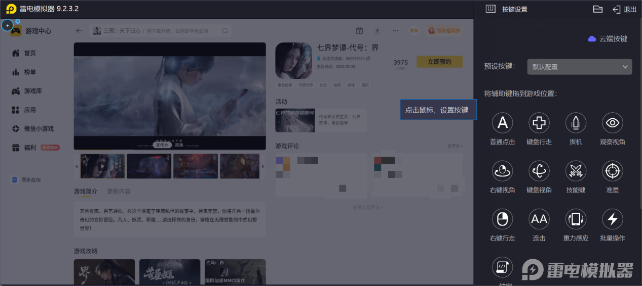 七界梦谭上线时间目前官方只确认在2026年上线,具体公测日期仍需要等待后续公告。推荐想玩的小伙伴到雷电模拟器预约七界梦谭,在游戏上线后第一时间体验七界世界的修仙冒险。