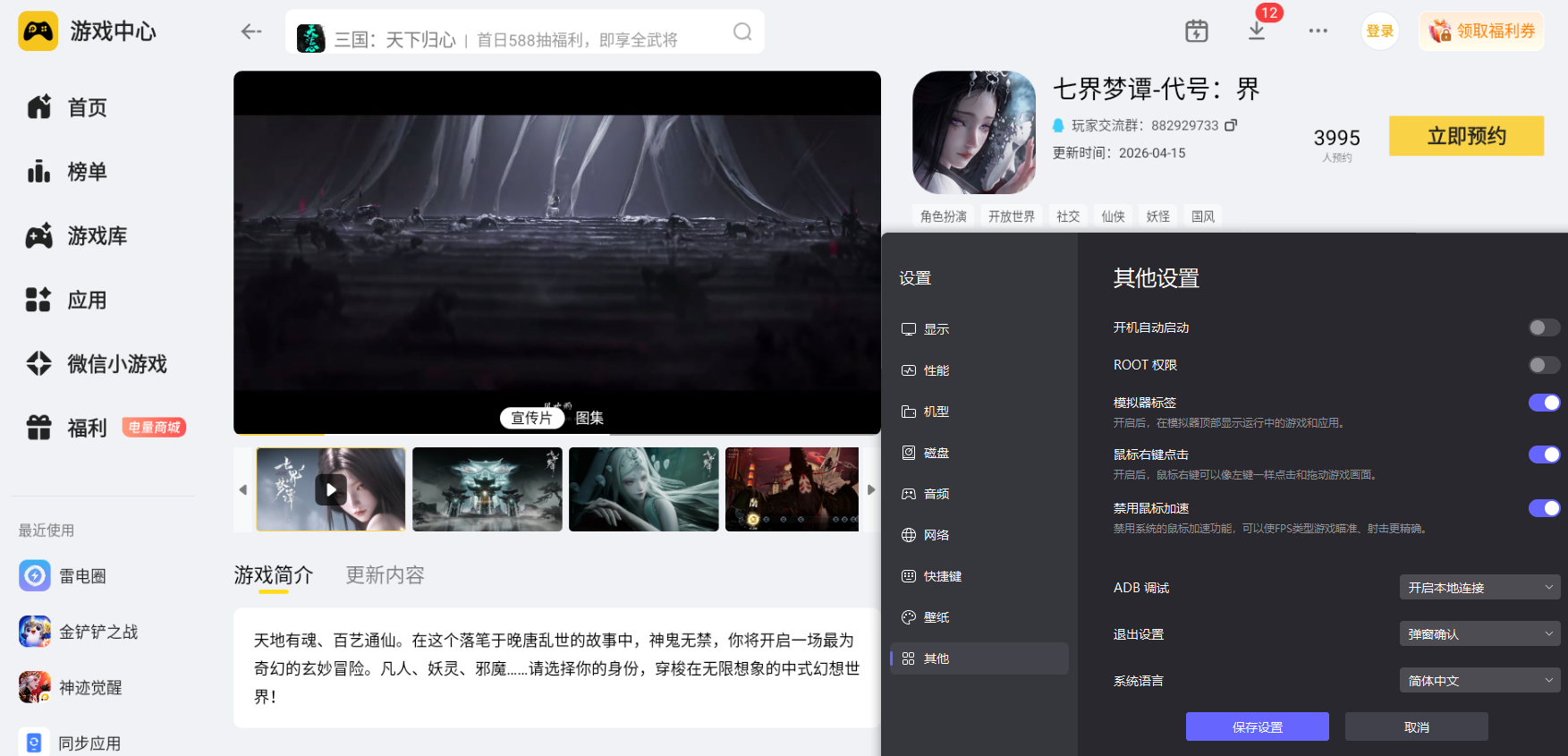 七界梦谭主打精致细腻的中式志怪美术风格,游戏内每个场景建筑、精怪造型和光影特效都经过精心打磨,需要足够清晰开阔的显示效果才能完整呈现美术设计细节。雷电模拟器支持4K分辨率+大屏显示模式,能够完美还原游戏原生美术质感,放大场景细节呈现效果,让每一处七界风光都展现出原汁原味的视觉质感。