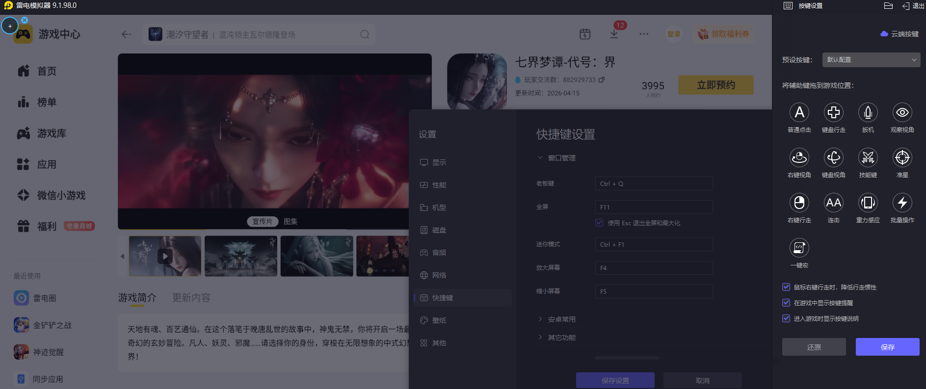 结合七界梦谭多样化的战斗操作和高清场景画面,用雷电模拟器在电脑上游玩这款手游体验会更好。电脑大屏搭配专属适配设置,能完美适配游戏所有化形连招、秘境探索和宗门养成操作,不用受手机屏幕大小和操作按键限制,全程稳定适配游戏各类核心玩法,轻松沉浸式闯荡七界修仙世界。