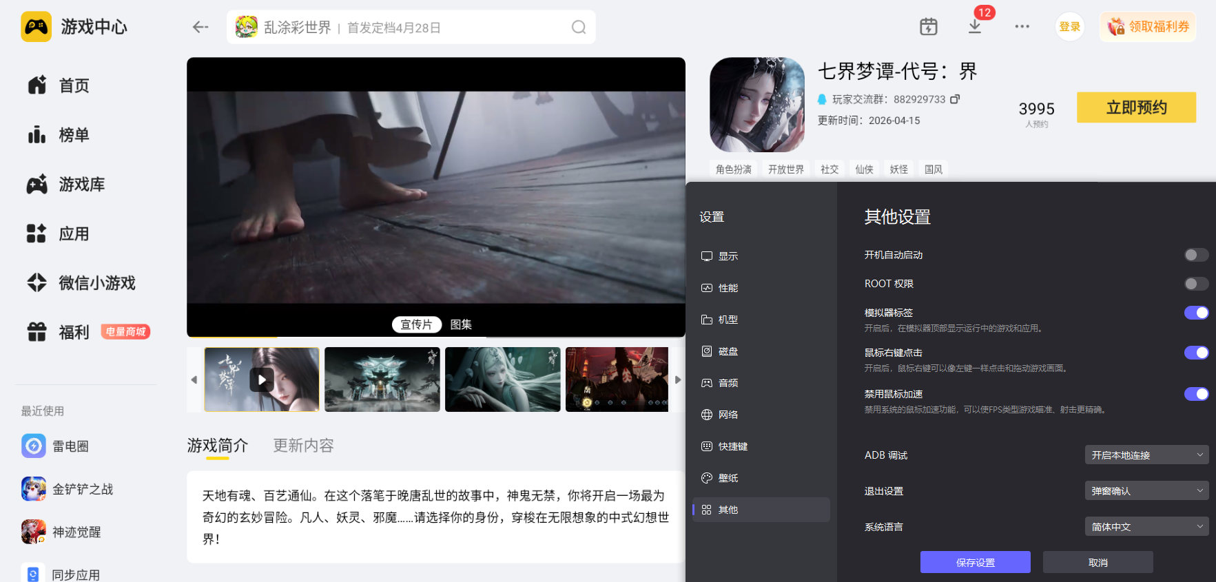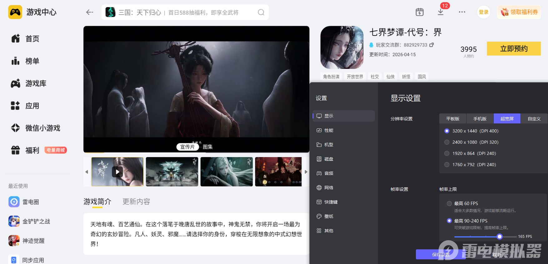 现阶段游戏各大官方预约通道已经全面开放,大家可以在雷电模拟器里提前预约,能第一时间收到开服提醒,不错过公测开局福利。而且选用雷电模拟器在电脑上体验这款手游,能够全方位提升整体游玩感受,轻松感受游戏打造的绝美七界风光和特色战斗玩法。