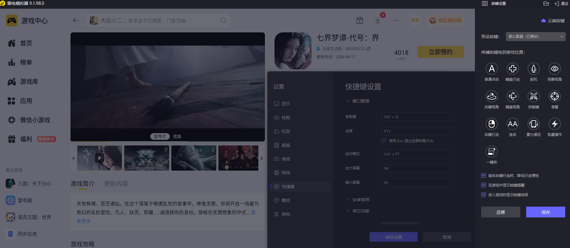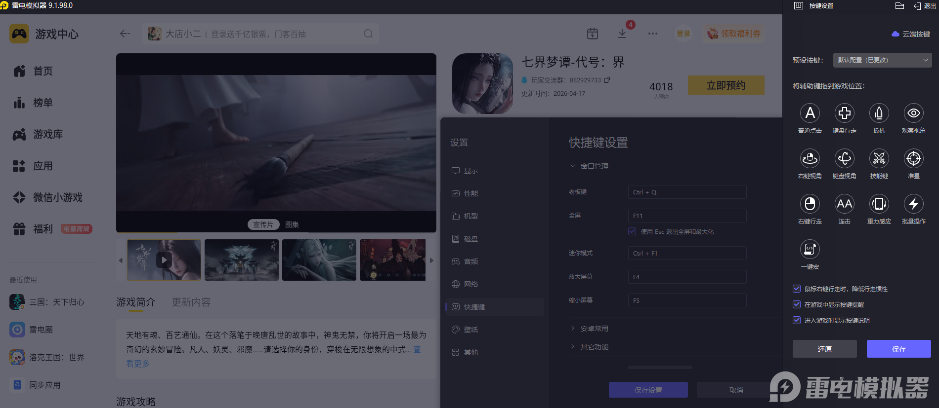 七界梦谭核心主打灵活化形战斗和预判式BOSS对抗玩法,战斗过程需要频繁切换灵体形态释放组合技能和走位躲避攻击,雷电模拟器支持自定义电脑键盘按键适配,搭配专属操作录制功能,能够设置贴合游玩习惯的操作按键,操控响应灵敏精准,轻松应对高强度团战和高难度副本闯关,熟练解锁各类高阶战斗操作。