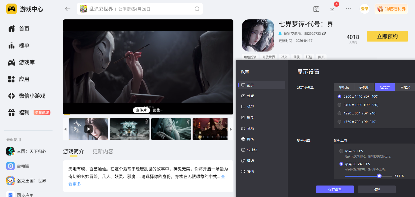七界梦谭拥有精致细腻的国风3D游戏场景,还有丰富多样的空战特效和化形变身视觉效果,各类秘境地图和仙侠建筑细节繁多,雷电模拟器支持4K分辨率+165稳定帧率,电脑大屏能够完整呈现游戏全部画面细节,画面色彩还原度高,场景质感大幅提升,轻松看清每一处隐藏探索点位和华丽战斗特效。