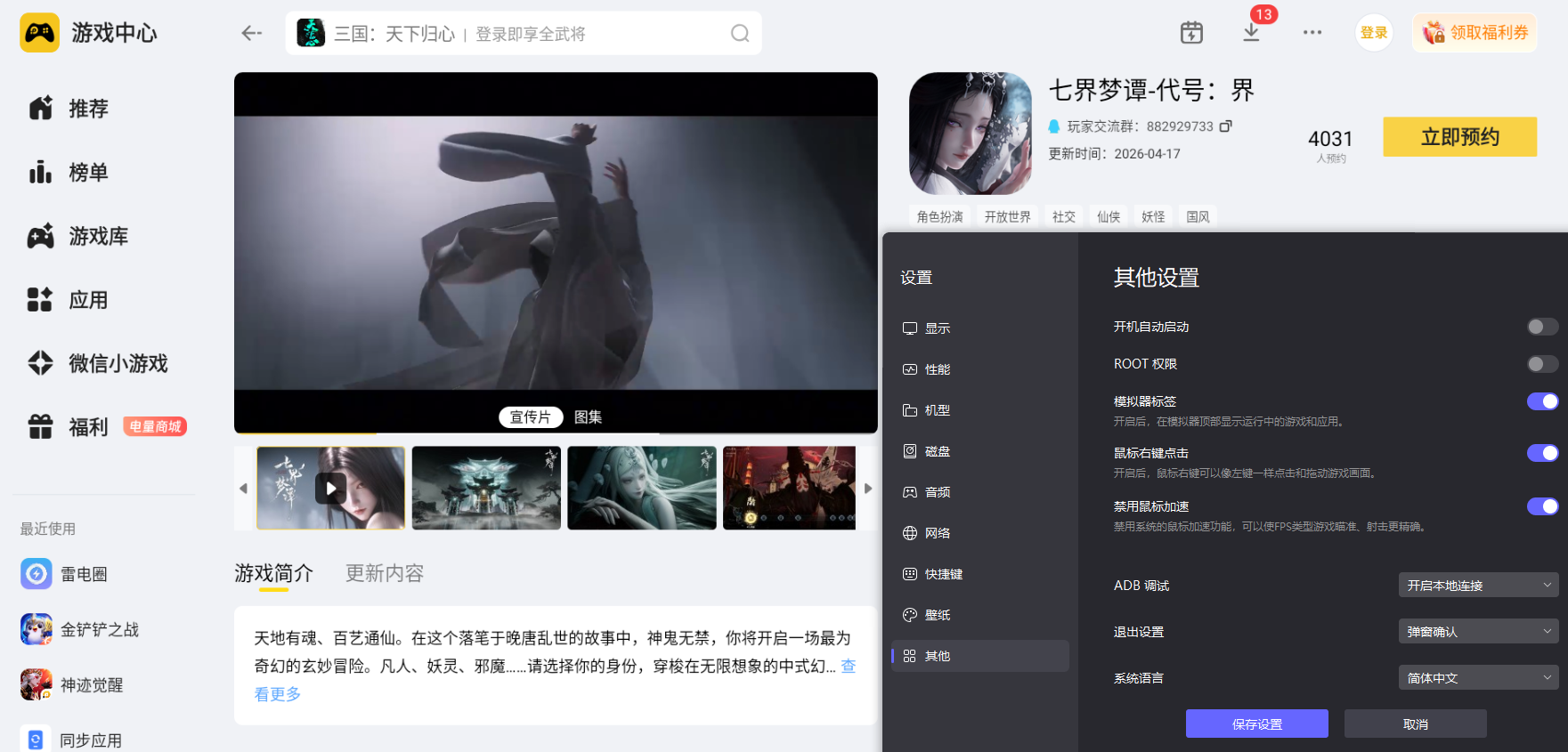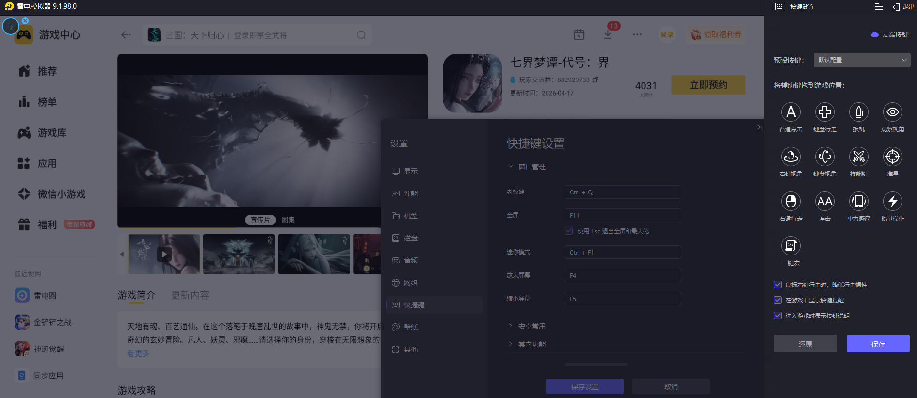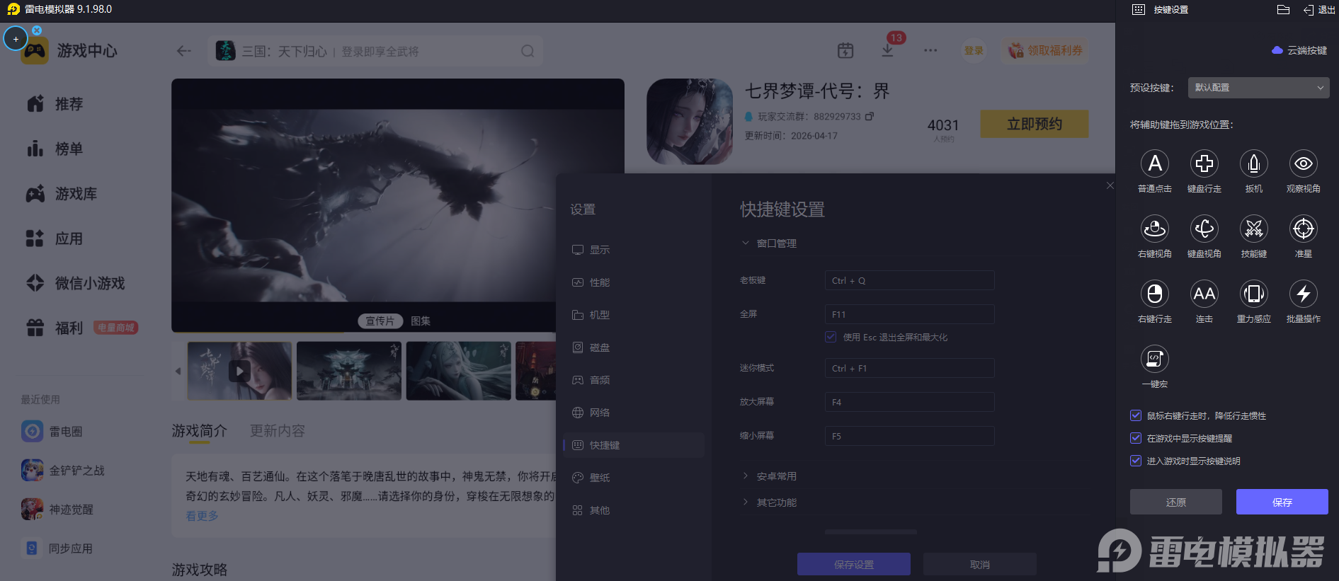 其实,大家可以尝试用雷电模拟器在电脑上玩七界梦谭,能够让整体游戏体验变得更为舒适,不管是长时间的开荒闯关,还是细致的角色养成操作,都能摆脱手机游玩的局限,让整个开荒过程更轻松,也能更好地感受游戏的完整内容。