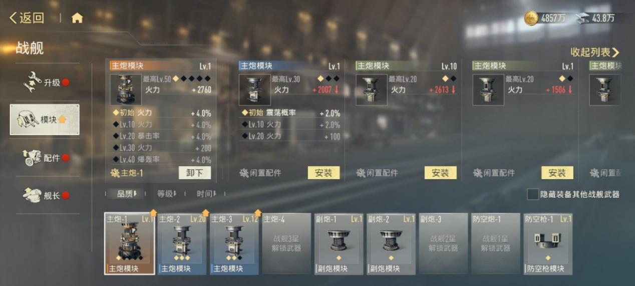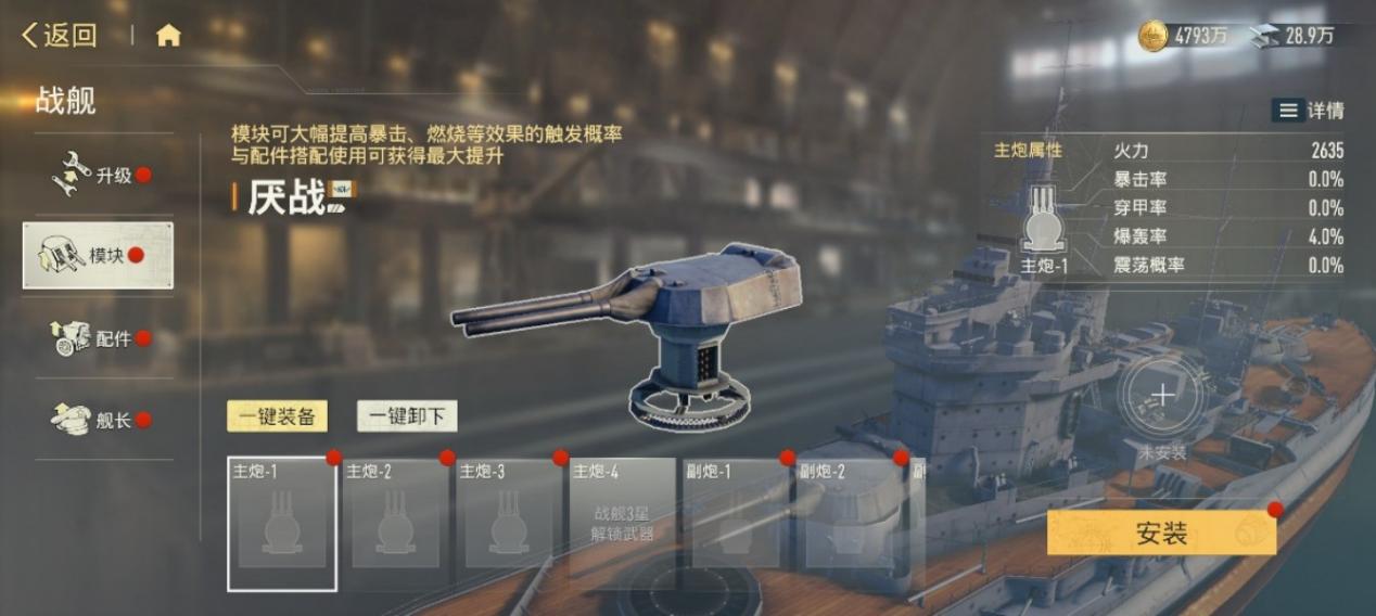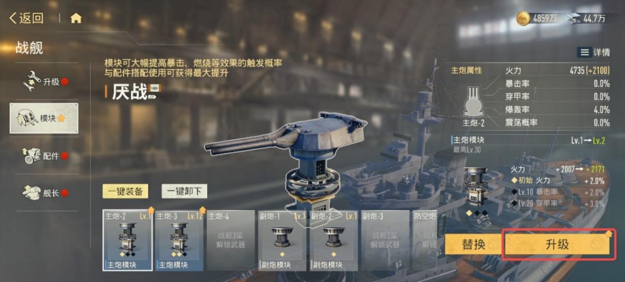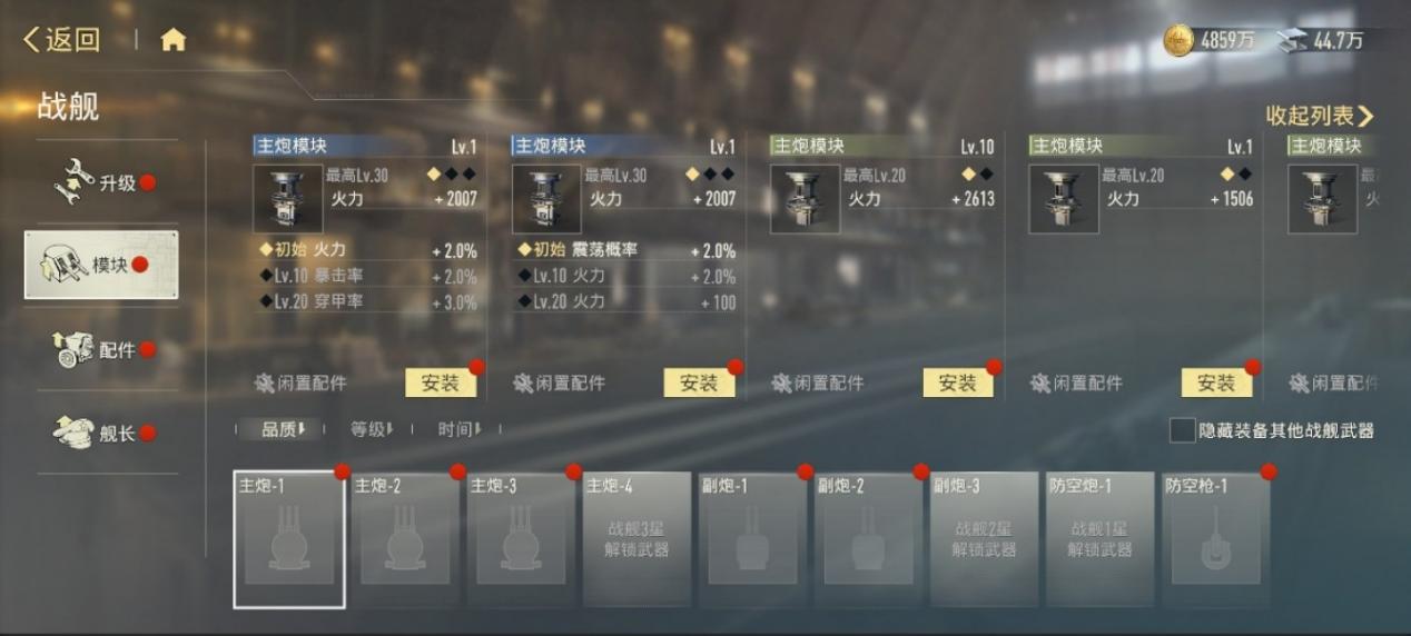 随着战舰星级提升,解锁新的武器后,模块的槽位也会随之增多。