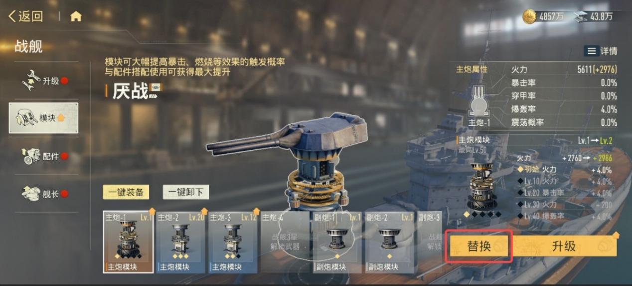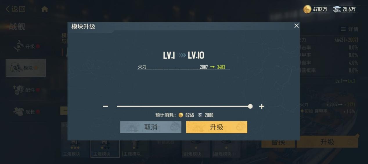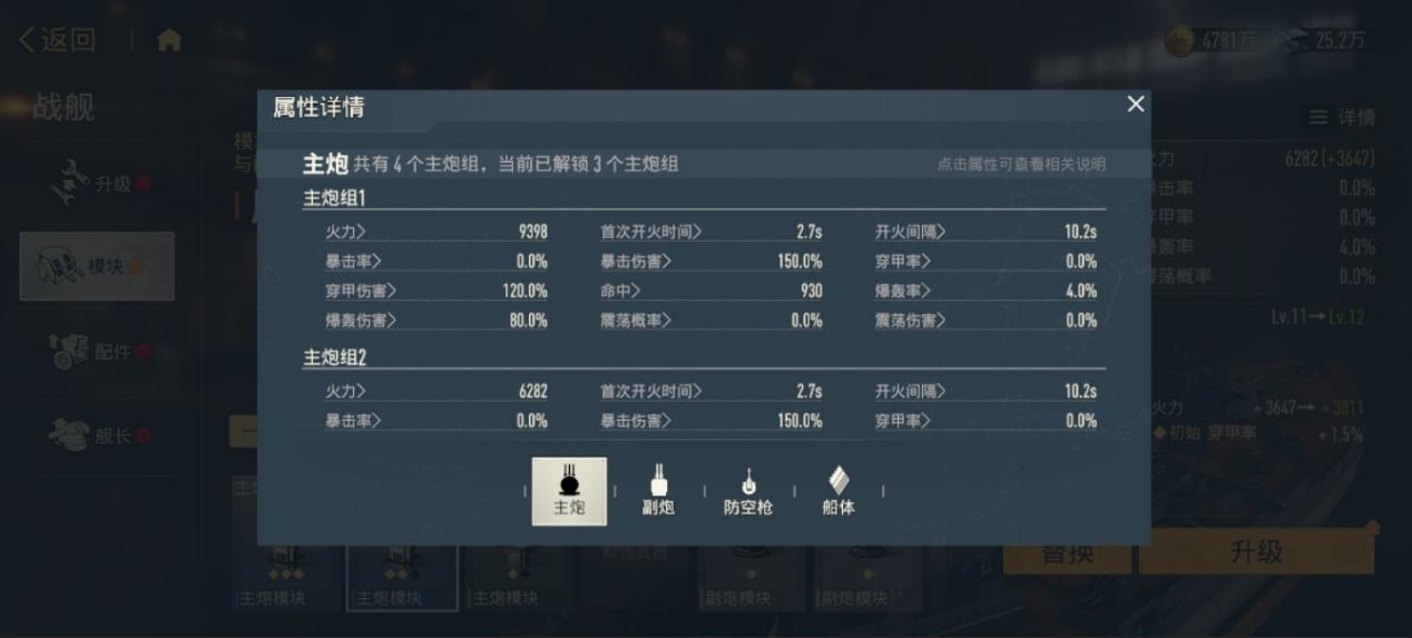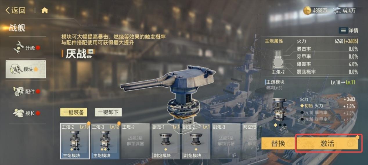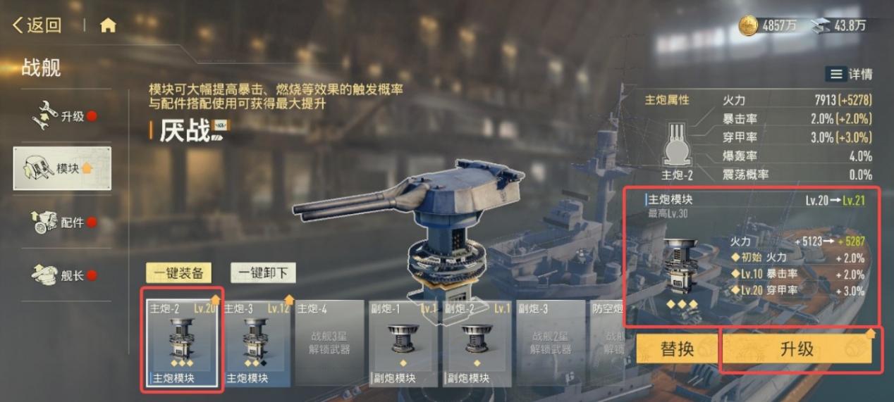 随着战舰星级提升,解锁新的武器后,模块的槽位也会随之增多。