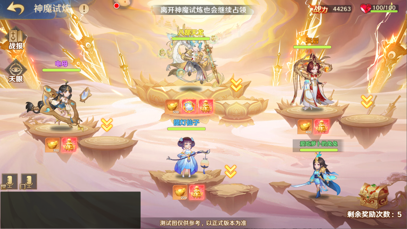 1、在神魔试炼中有各种不同难度的试炼点,占领试炼点达到指定时间可获得对应奖励;