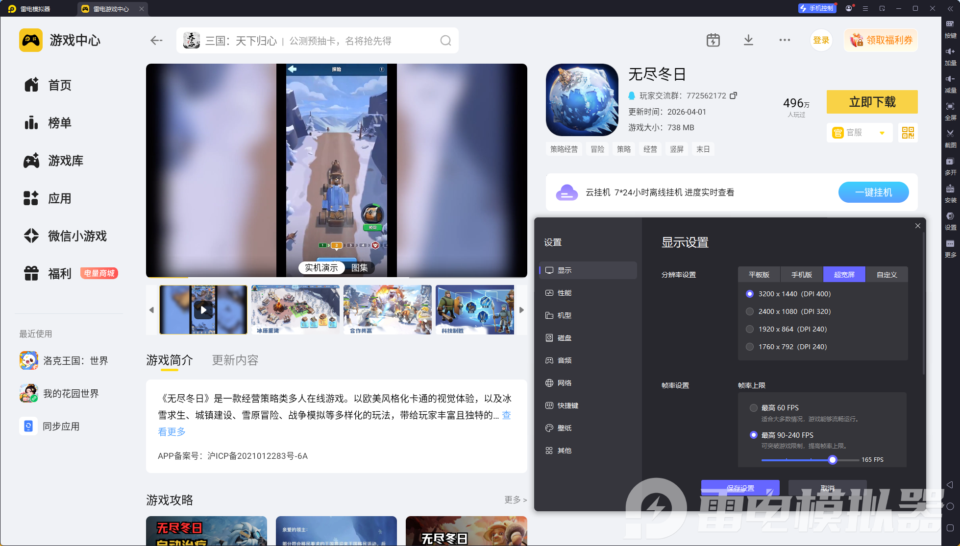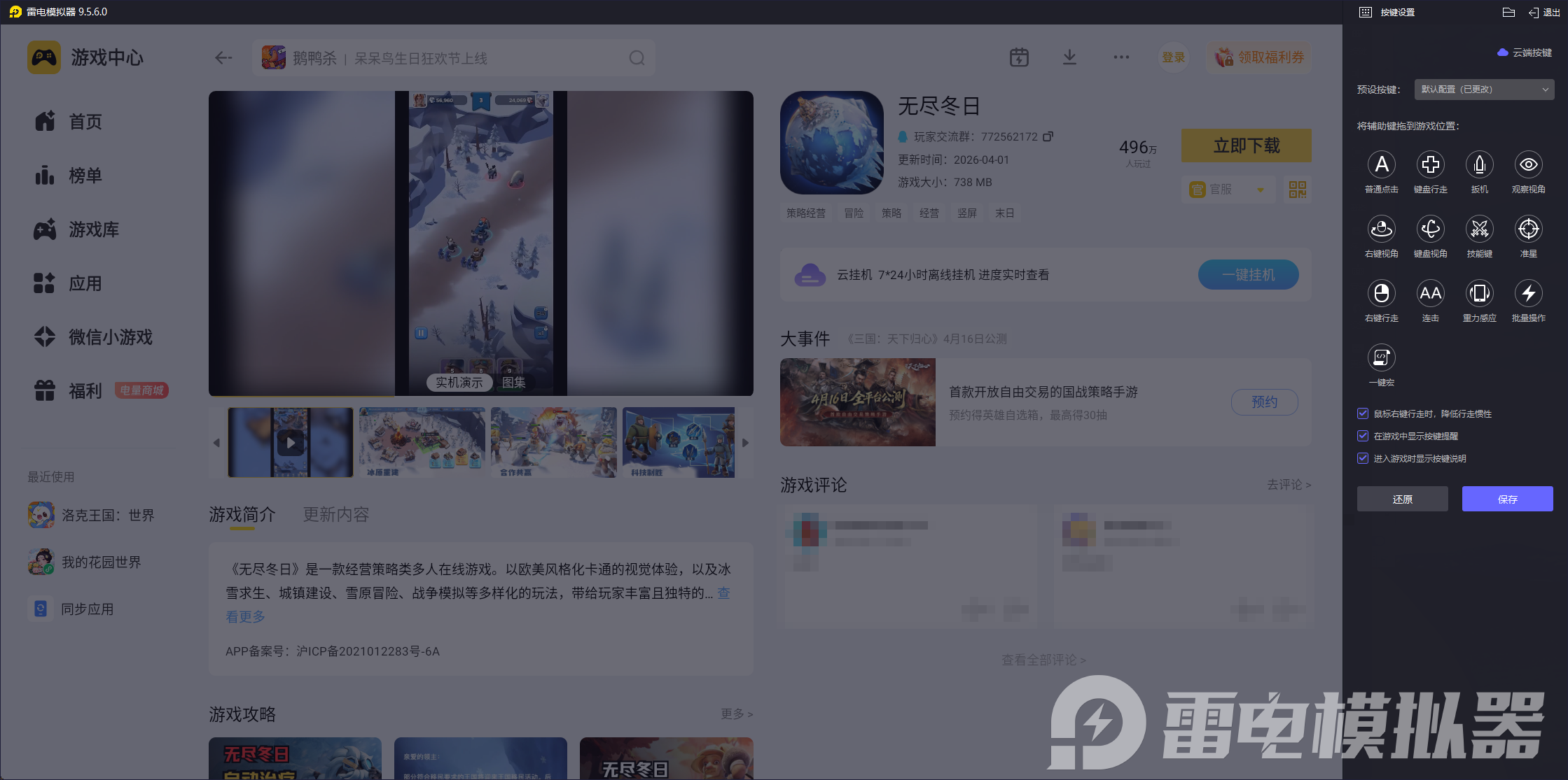 想要流畅体验无尽冬日周年庆,雷电模拟器能全方位提升游戏体验,优势尤为突出。