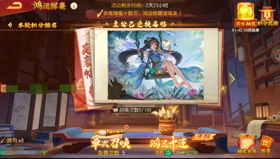 2、在抽奖开启期间,只要主公进行过1次挥毫,就能自动获得本轮抽奖的参与资格,挥毫次数越多,中奖概率越大;