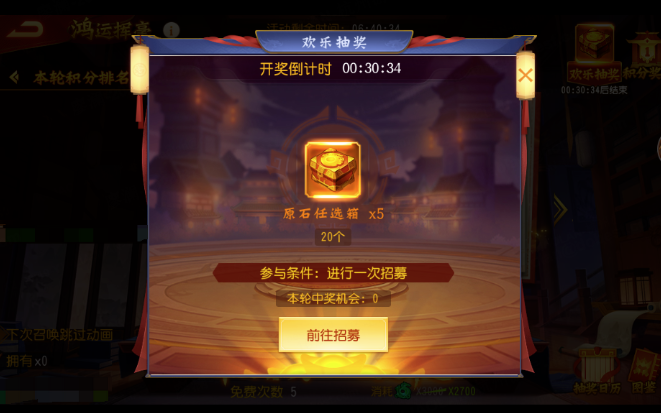 4、每轮抽奖持续2个小时,其中前1小时50分钟为抽奖时间,最后10分钟为开奖和公示时间(小乔温馨提示:在开奖和公示时间内进行招募,所获得积分不会计入抽奖积分排行榜中);