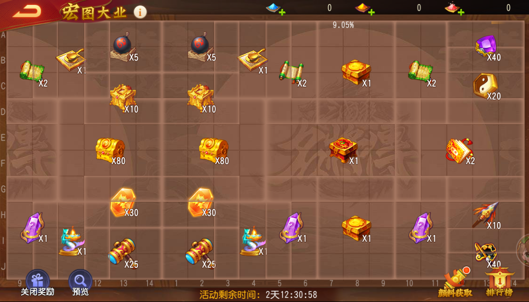 4、未使用完的功绩、富贵富足、生财有计,都可以保留至下次活动使用。