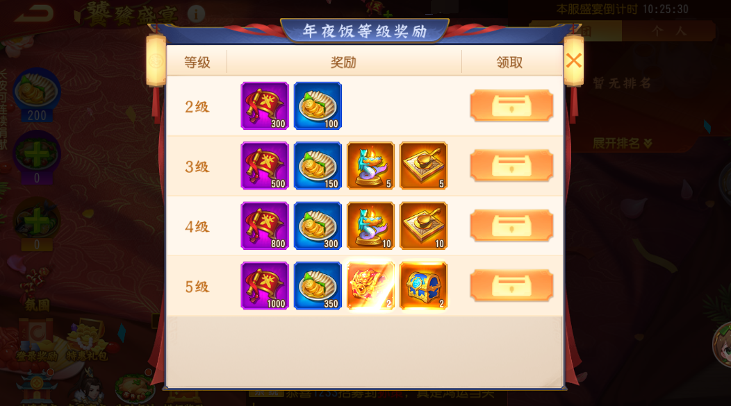 1、盛宴等级奖励丰富,10级还有金色命格领取。