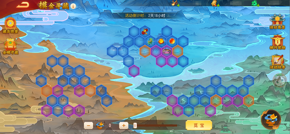 1、主公可以通过消耗道具【铲子】,选择进度未达100%的格子进行【觅宝】。每消耗一个【铲子】,扣除格子血量1点。当格子进度达到100%时,方可获得奖励。