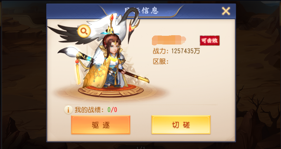4)驱逐低等级城池的主公也会记录【已战胜】的标记,但不会提供积分收益。