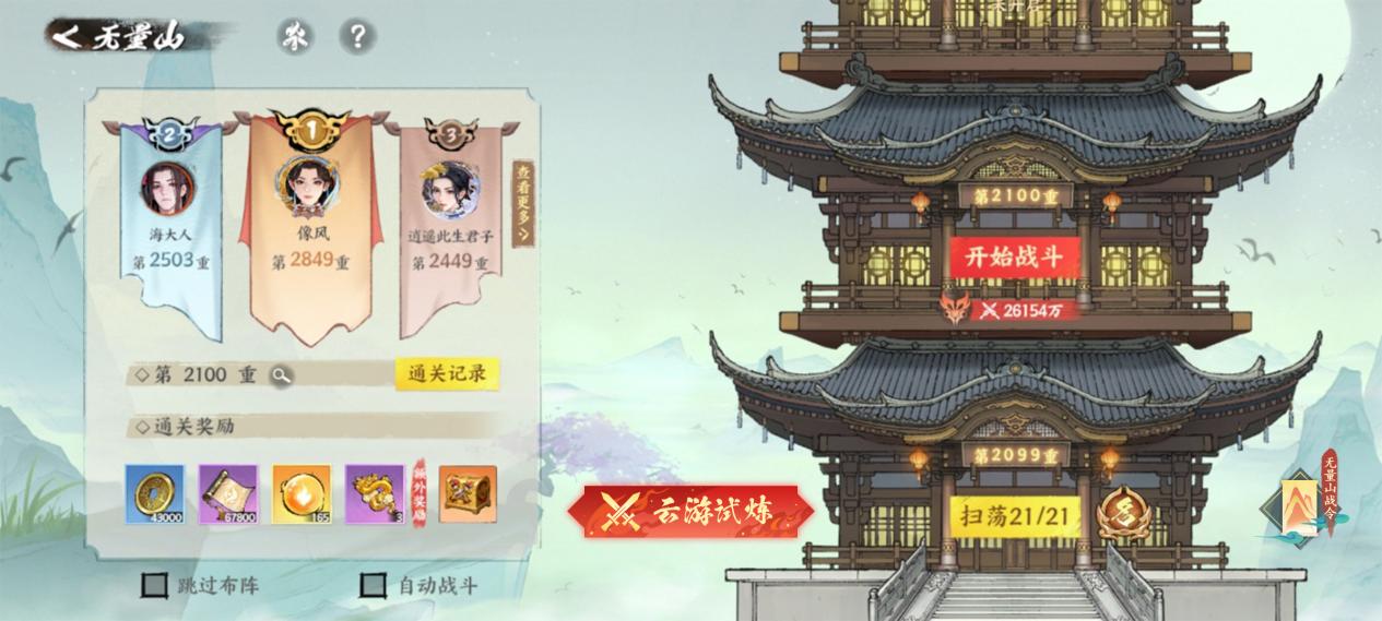 新的试炼并非对所有人开放,只有在无量山(主塔)证明过实力的少侠方可进入。