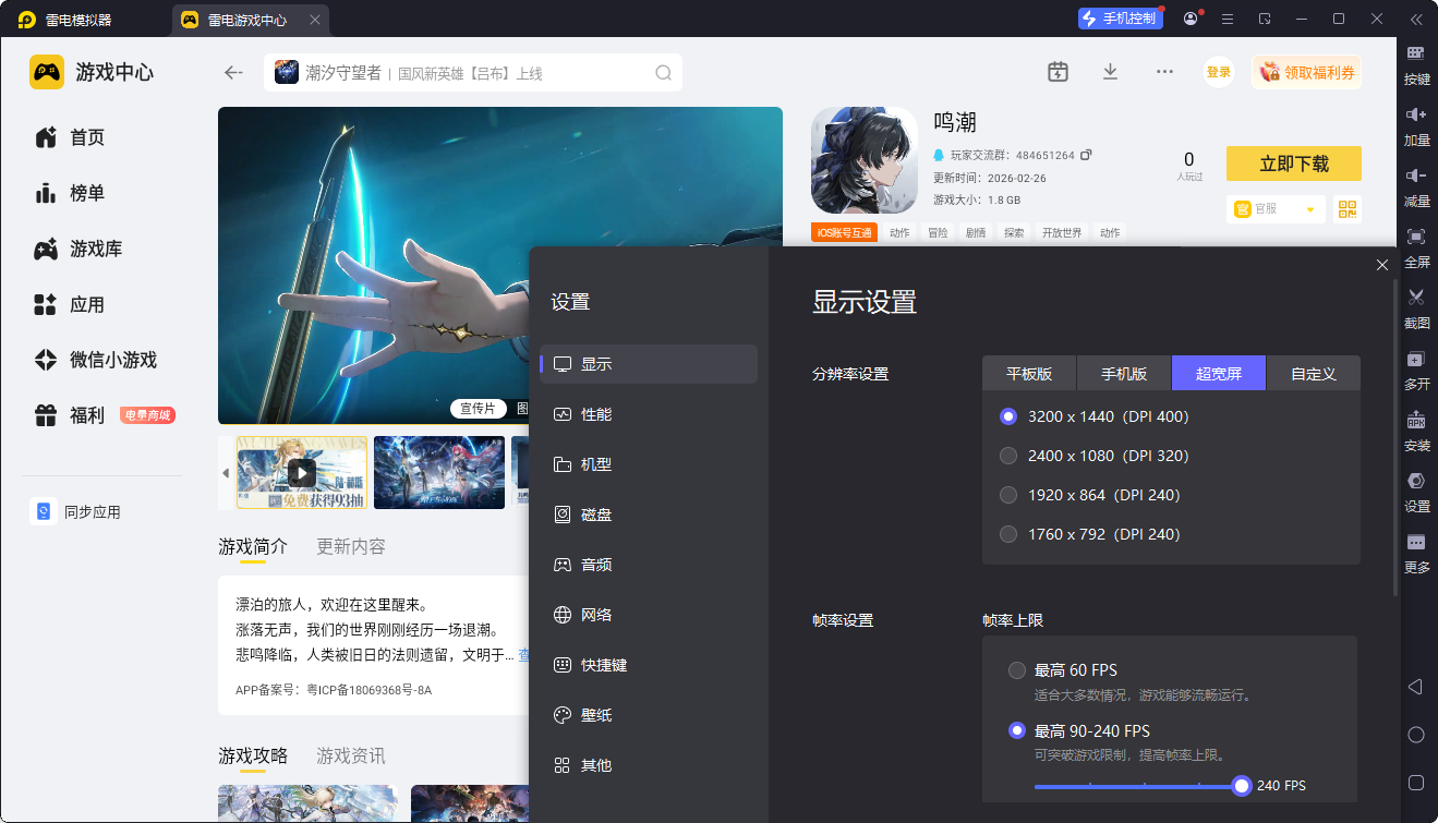超强性能加持,采集材料更高效。刷取鸣潮陆赫斯培养材料时,频繁切换地图、挑战BOSS很容易出现卡顿,雷电模拟器的超强性能的能带来更快更流畅的游戏体验,杜绝卡顿、掉帧问题,让你持续刷取隧体绳链、海蚀碎晶等材料,不用浪费时间在加载与闪退上,大幅提升材料收集效率。