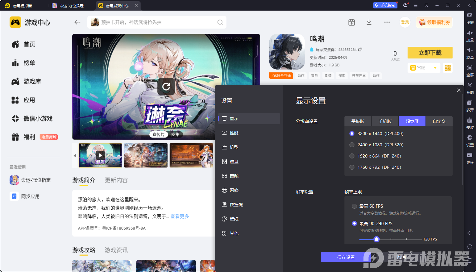 雷电模拟器——鸣潮电脑版的好帮手