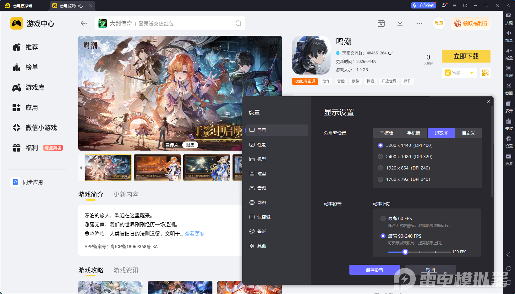 雷电模拟器——鸣潮电脑版的好帮手