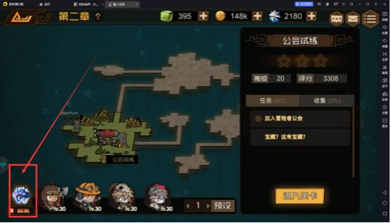 蒂格镇的冒险者们,在咱们进入游戏后,首先跟着新手指引走,通关第一章节第一关的时候,就会开启冒险指南,把冒险指南第一天的5章做完,即可升级继续通关后面的主线。